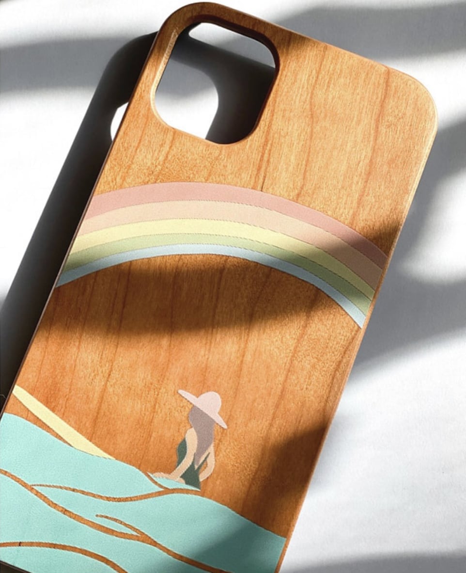 ひとつひとつ異なる木目が描く自然の模様に、Mahinailyのアートをそっと重ねました。チェリーウッドならではのあたたかみと、手にした瞬間に感じる木のぬくもりが